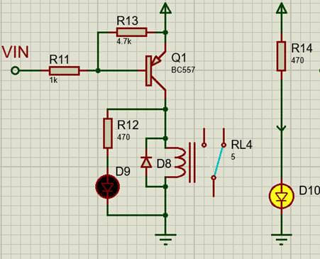 2. Hình dưới là dùng transistor loại PNP như: S9012 (2T1), A1015 (BA), Tip41C, Tip42C, S8550 (2TY), ...