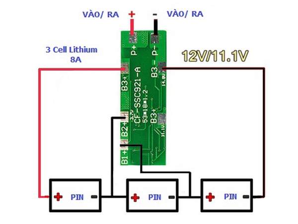 3 pin 3.7V loại 18650 được mắc nối tiếp nhau như sơ đồ