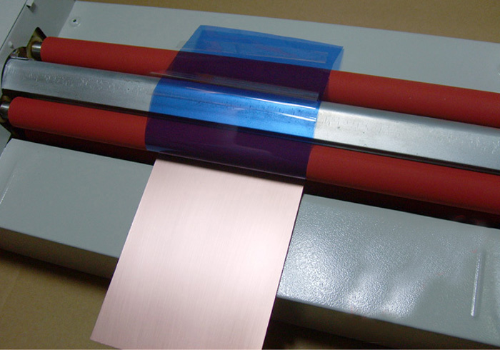 3. Sau đó ép phim với một tấm đồng cố gắng không để không khí lọt vào, ép nguội trước.