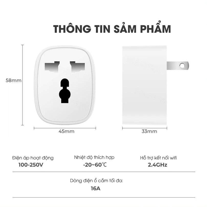 - Ổ cắm wifi Smart plug điều khiển tắt mở bằng wifi thông qua App Smart Life & Tuya Smart.