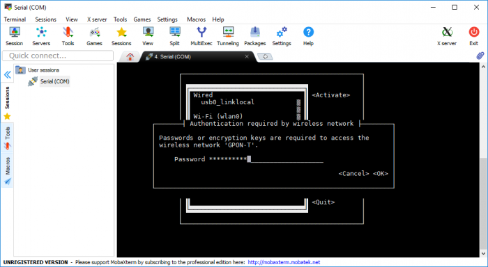 Sau khi tiến hành flash hệ điều hành theo hướng dẫn từ nhà sản xuất tại https://docs.getchip.com/..., tôi kết nối thông qua cổng console và thiết lập Wifi cho thiết bị sử dụng lệnh sudo nmtui.