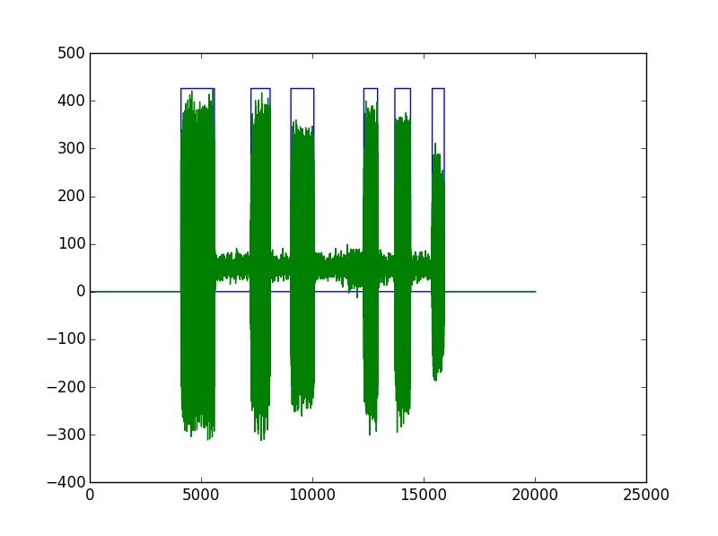 Như các bạn thấy, chỉ cần thu lại được âm thanh thì việc nhận diện được khi nào điện thoại được bấm là rất dễ dàng. Lật ngược lại vấn đề, để truy tìm số điện thoại, ta chỉ cần chọn dữ liệu nằm trong ô chữ nhật màu xanh dương và dùng biến đổi Fourier để tìm được tần số nằm trong đồ thị điều hoà đó và tra bảng, thế là xong.