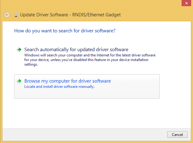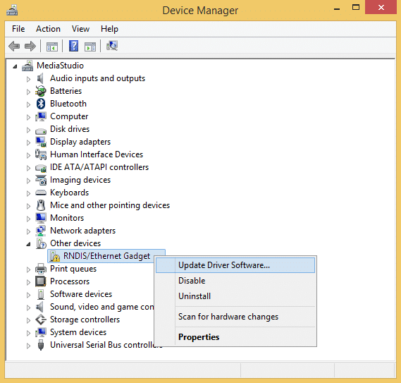Các bạn mở Device Manager => Other devices => RNDIS/Ethernet Gadget => nhấp chuột phải => Update driver software