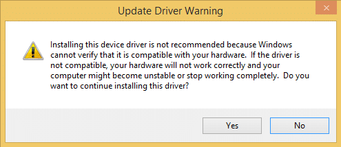 Khi hiện lên "Update Driver Warning" thì các bạn bấm "Yes"