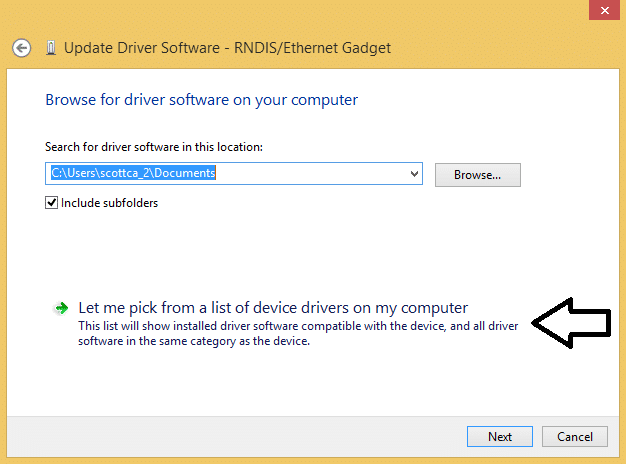 Bấm vào "Let me pick from a list of device drivers on my computer"