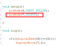 Trong hàm setup, tại dòng pinMode(7,INPUT), thay chữ INPUT thành INPUT_PULLUP.