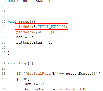 Thay dòng pinMode(8,INPUT); thành pinMode(8,INPUT_PULLUP);