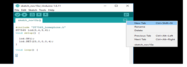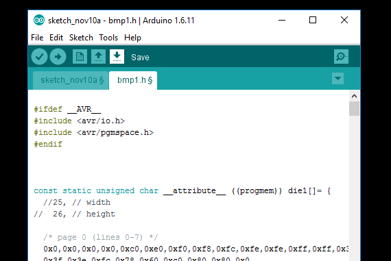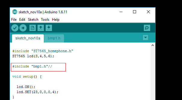 Chọn New Tab, và đặt tên file là “bmp1.h”, sau đó copy toàn bộ code trong file tải về dán vào, rồi nhớ ấn lưu.