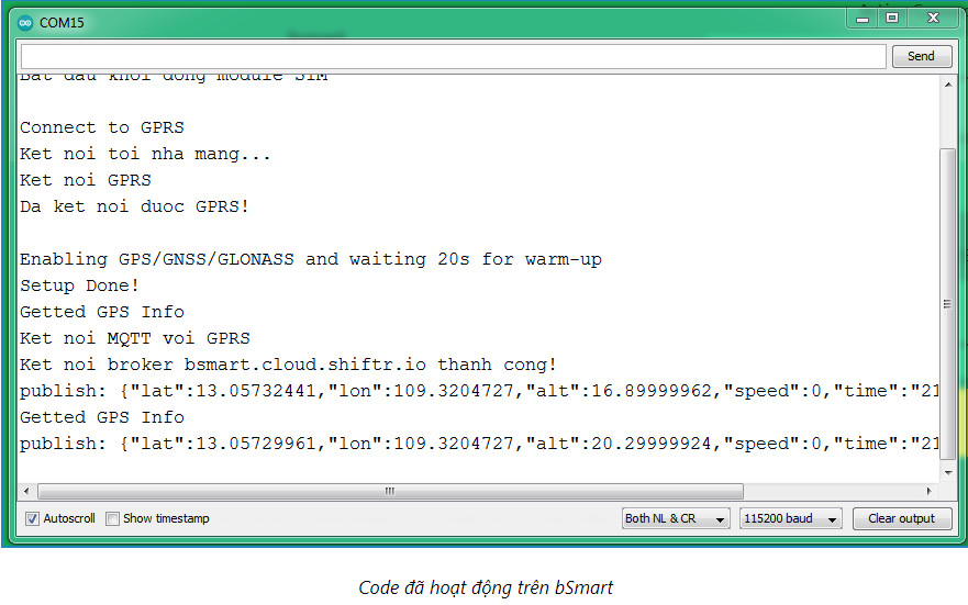 1. Lập trình kit bSmart lấy thông tin GPS gửi lên MQTT Broker: