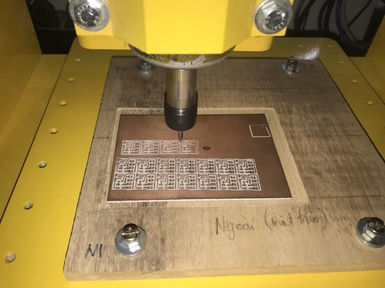 Bước 10: Dùng file đó mở trong mach3 loader để tiến hành phay mạch. Chú ý set gốc tọa độ X, Y, Z cho chuẩn