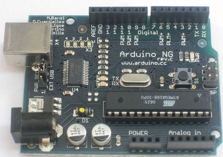 Ở phiên bản này, Arduino của chúng ta đã sử dụng vi điều khiển ATmega328 thay vì ATmega168 từ tháng 1 năm 2009