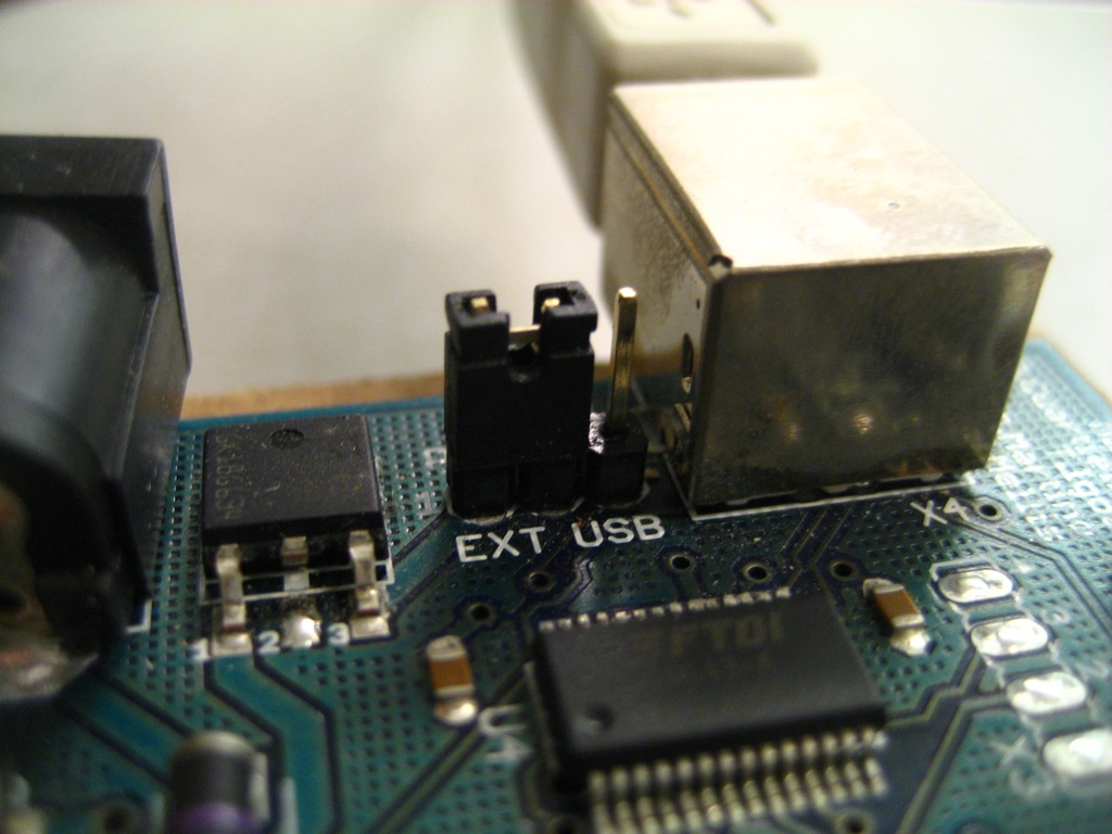 Ở board mạch Arduino USB này, chúng ta đã thấy có sự xuất hiện của cồng USB Type B, như vậy, nguồn điện nuôi Arduino không phải lúc nào cũng là 12V (thường thường là 12V), vì khi gắn cổng USB TypeB ta lại có thể 5V, như vậy nếu đi qua con LM7805 thì sẽ không đủ điện nuôi cho con ATmega328. Điều đó khiến những nhà phát triển phần cứng Arduino phải thích nghi với việc thay đổi header ext or usb mỗi khi thay đổi từ lúc nạp chương trình sang dùng nguồn ngoài.