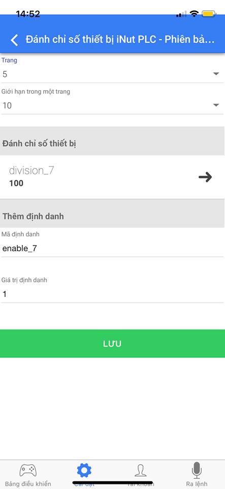 Để vào phần lập trình chúng ta nhấn vào mục Đánh chỉ số thiết bị.