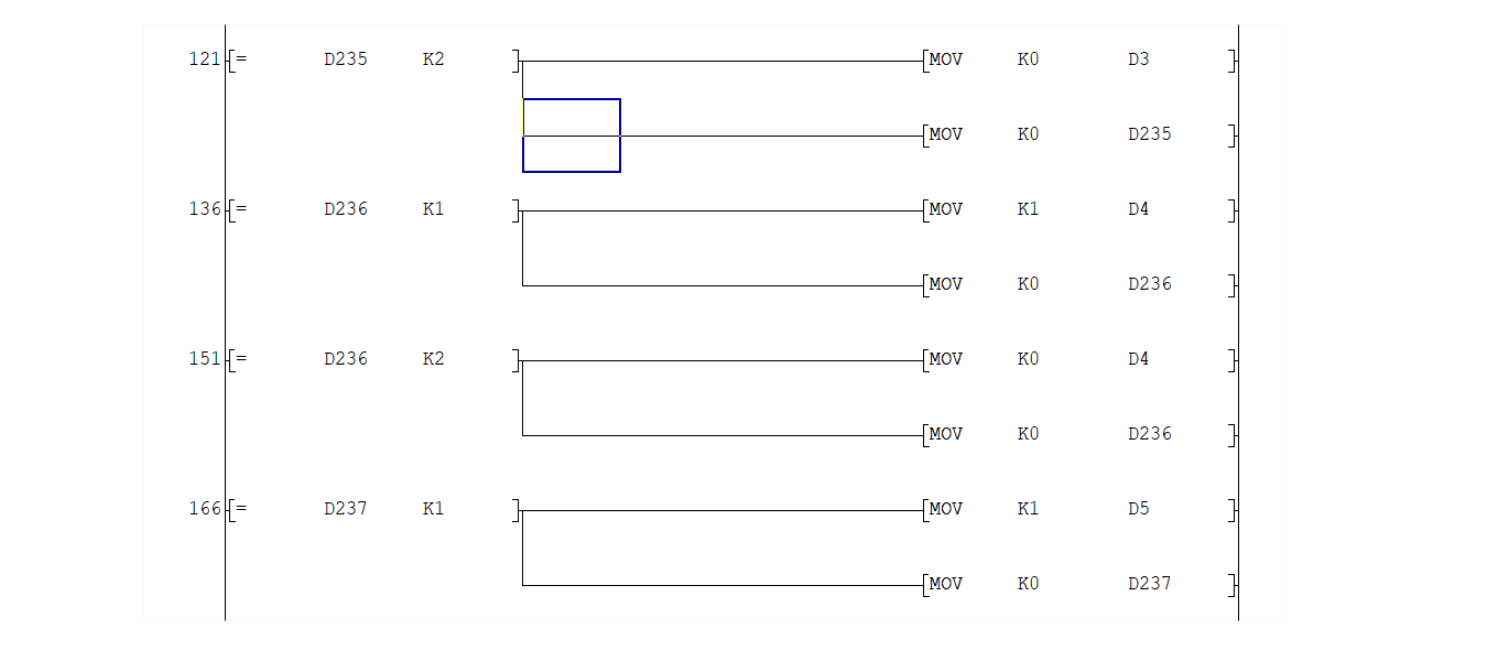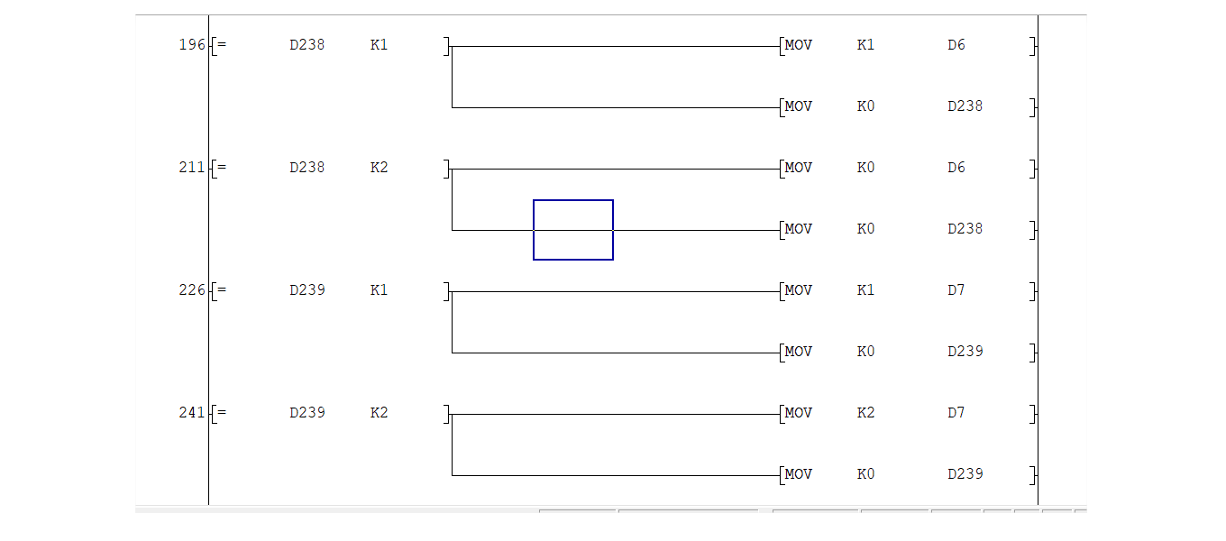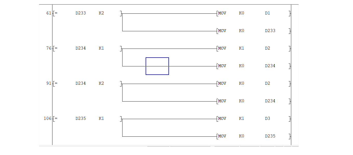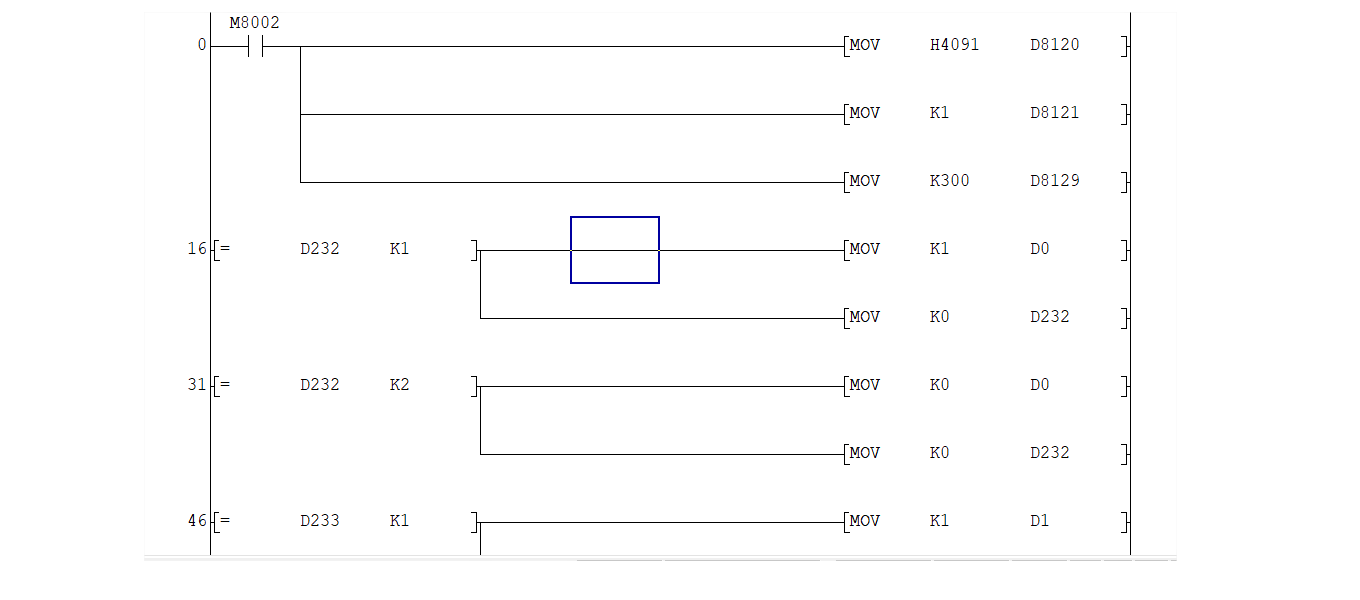 *Giải thích Dòng 16 - 301: Ở dòng 16, Ta có phép so sánh Nếu D232 = 1 thì sẽ gửi giá trị 1 về cho D0 và reset D232 về 0, dòng 17 thì Nếu D232 = 2 thì sé gửi giá trị 0 về cho D0 và reset lại D232 = 0.