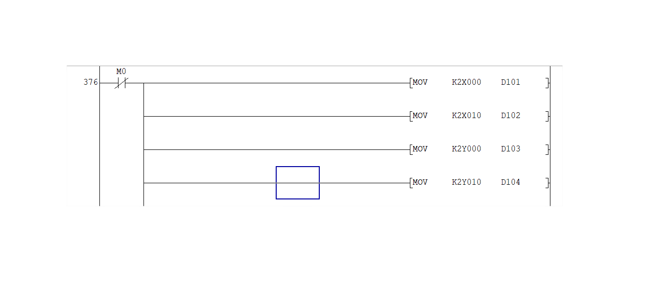 - Dòng 376 đến hết: Gán trạng thái của các ngõ ra X00 - X017 và Y00 - Y017 vào các thanh ghi lần lượt từ D101 - D104