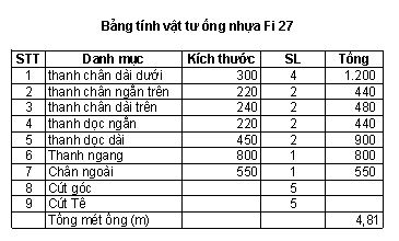 Tính phần khung nhựa