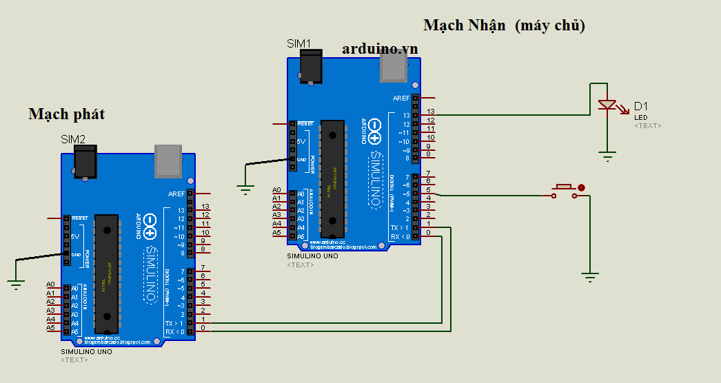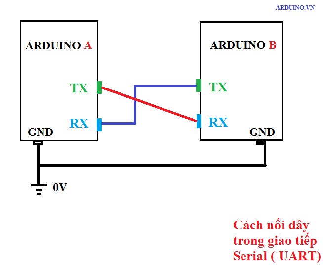 Nối dây arduino RX của arduino này nối với TX của arduino kia..