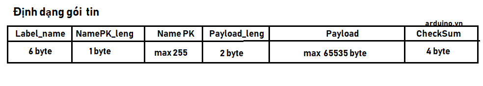Thư viện truyền dữ liệu bất kỳ (byte ,long, float , double ... ) theo gói tin cho arduino