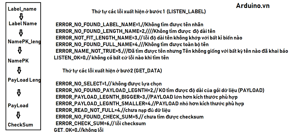 - Như đã nói ở phần đầu , Thư viện không dùng bộ nhớ đệm để lưu trữ dữ liệu PayLoad nhận được, dữ liệu nhận đến đâu sẽ ghi đè vào mảng hoặc biến đến đó ngay cả khi gói tin đó bị lỗi.