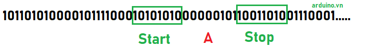 Ví dụ: Chúng ta có 1 byte dữ liệu A với giá trị bằng 11. Phía trước của A sẽ là 1 byte Start (B10101010) , Phía sau của A là 1 byte Stop (B10011010), Như vậy A có thể sẽ bằng B00000101.