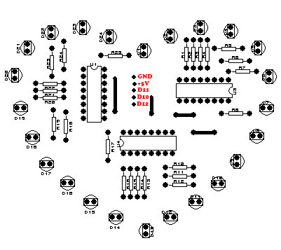 - 24 đèn led 5mm màu đỏ đục (Màu vỏ trắng đục, không nên dùng led siêu sáng vỏ trong suốt vì ánh sáng rất chói)