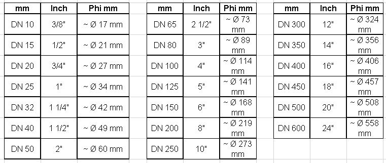 chuyển đổi các cỡ ống