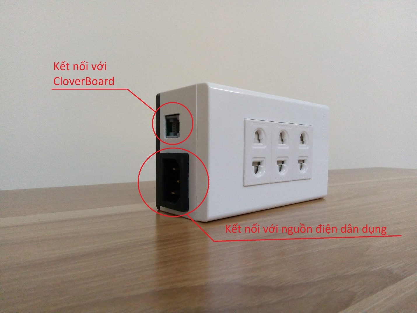 Kết nối Clover Board với ổ cắm tích hợp qua cổng số 1 của Board (có thế dùng các cổng khác được)