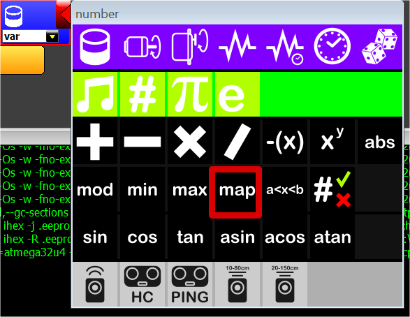 Gán biến var cho lệnh map. Thực hiện bằng cách nhấn vào đối tượng giống cái lon bên phải, kích mũi tên chọn map.